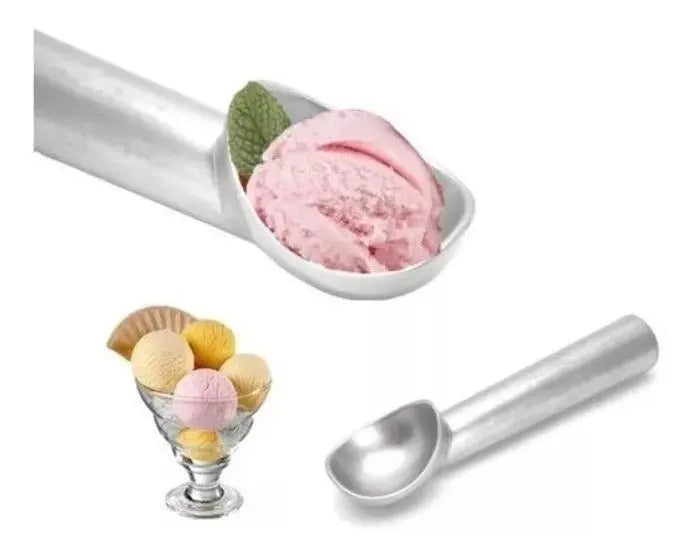 É feito em alumínio, material altamente resistente. Proporciona facilidade e praticidade na hora de pegar sorvete.