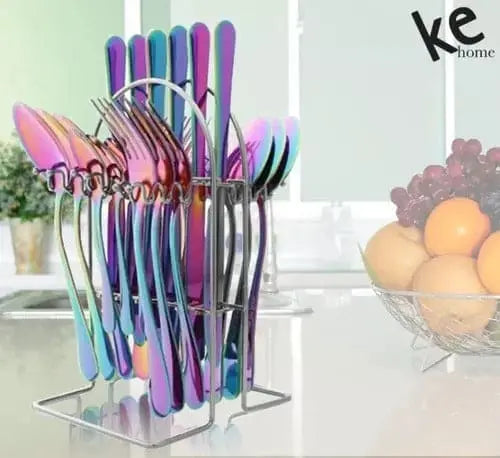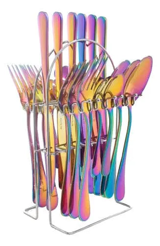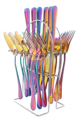 Kit De Talheres Color Ke Home Inglaterra é um conjunto de talheres elegante e sofisticado, perfeito para dar um toque de classe à sua mesa. Composto por 25 peças, incluindo garfos, facas, colheres de sopa, colheres de chá , o faqueiro oferece tudo o que você precisa para servir uma refeição completa. Cada talher é feito com materiais de alta qualidade e possui um design clássico que combina perfeitamente com qualquer estilo de decoração. Ideal para uso diário ou para ocasiões especiais.