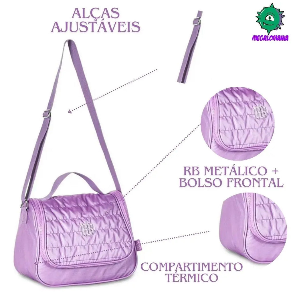 Lancheira Térmica Duas Alças Rebecca Bonbon Lilás Rosa Azul Lanchinho Juvenil Escolar Feminino Clio