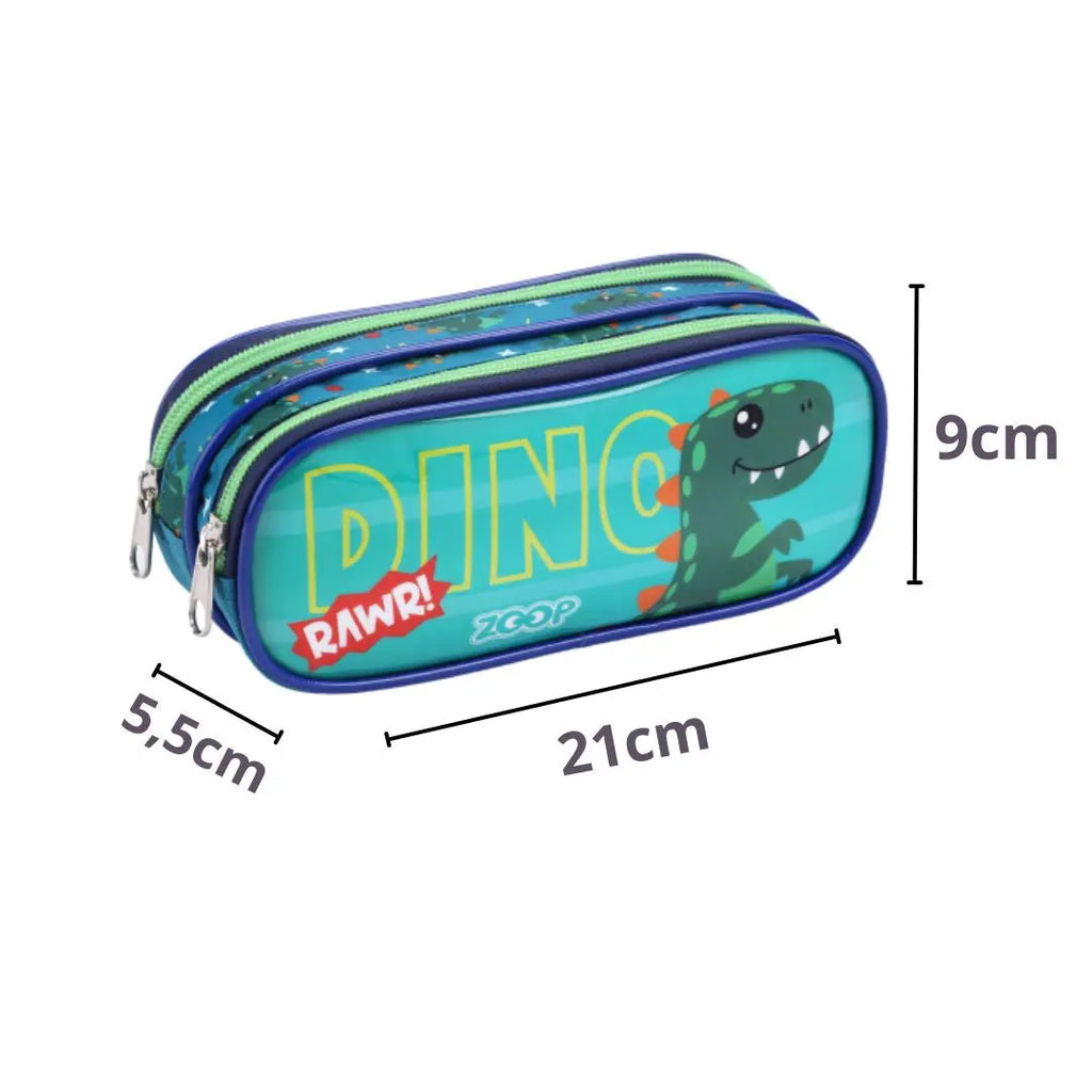 Kit Mochila de Carrinho Dinossauro Verde Estojo Infantil com Dois Compartimentos Masculino Meninos Crianças Seanite