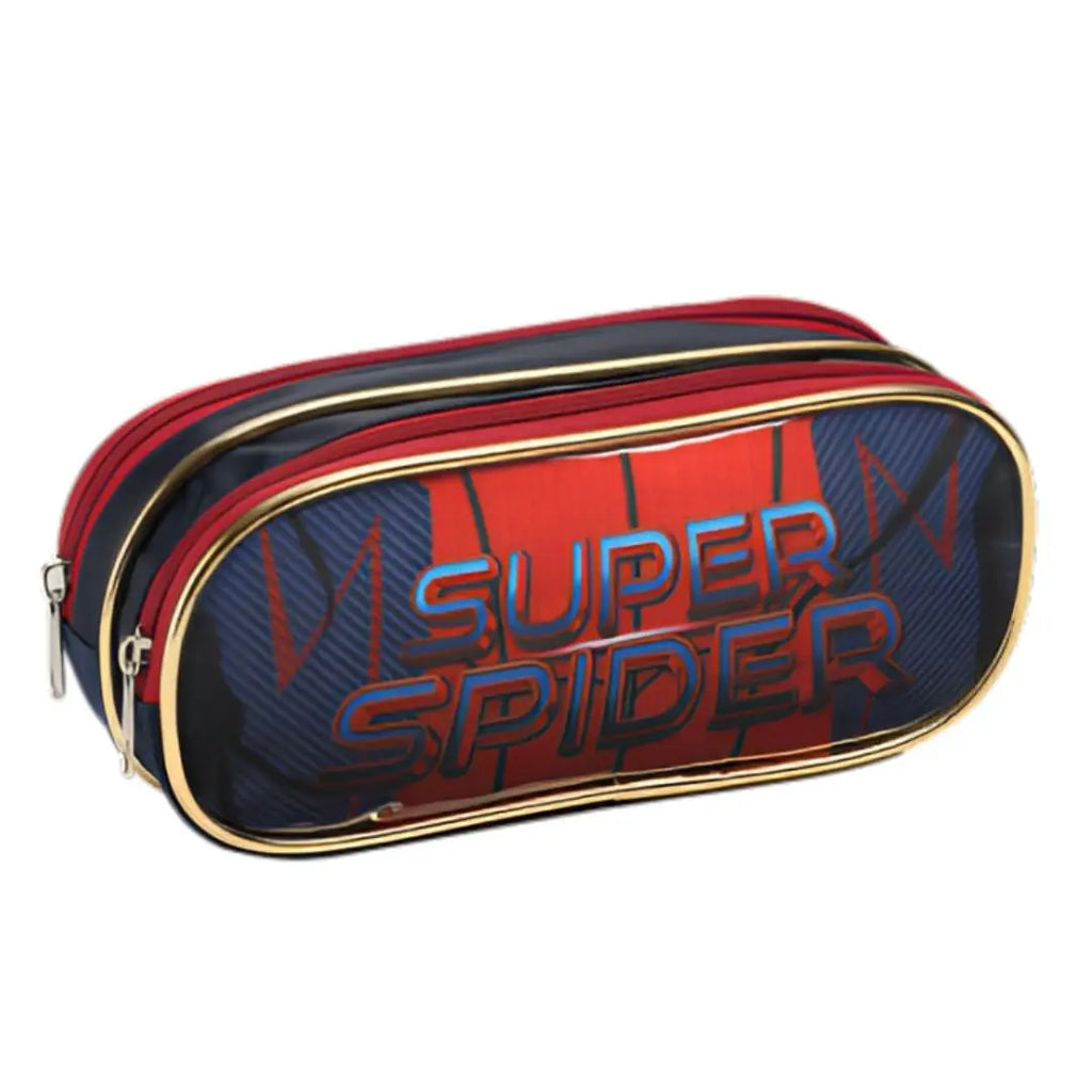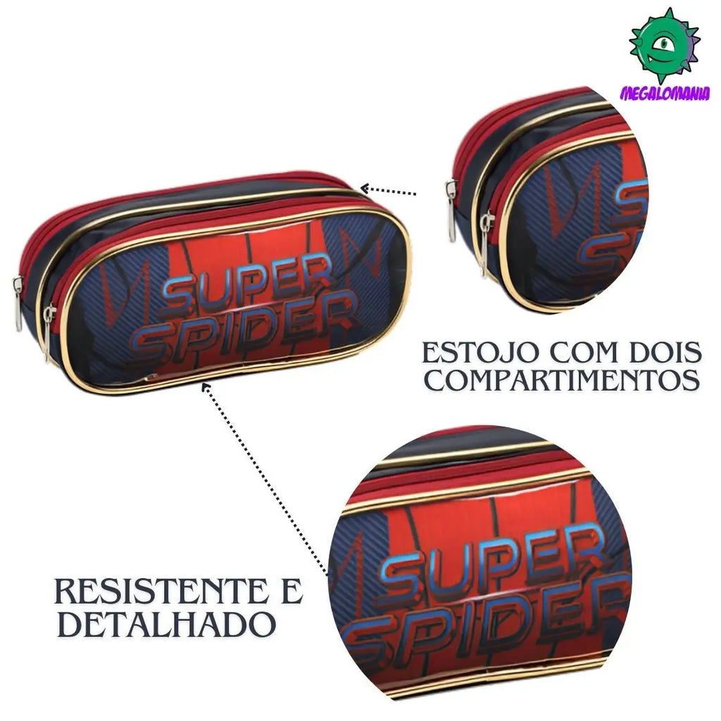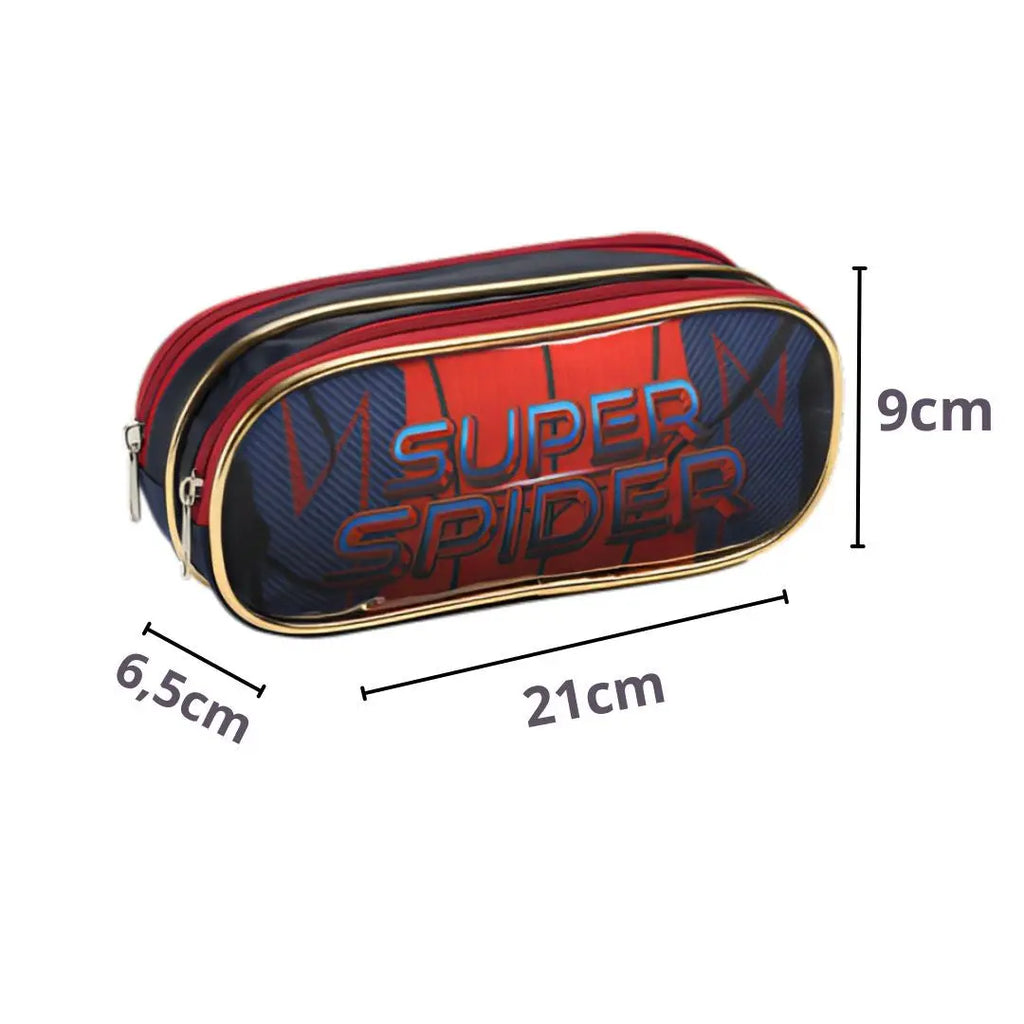 Kit Mochila de Carrinho Infantil Super Spider Aranha Homem Mala Bolsa Lancheira Térmica Estojo com Dois Compartimentos Escolar Masculino Menino Seanite