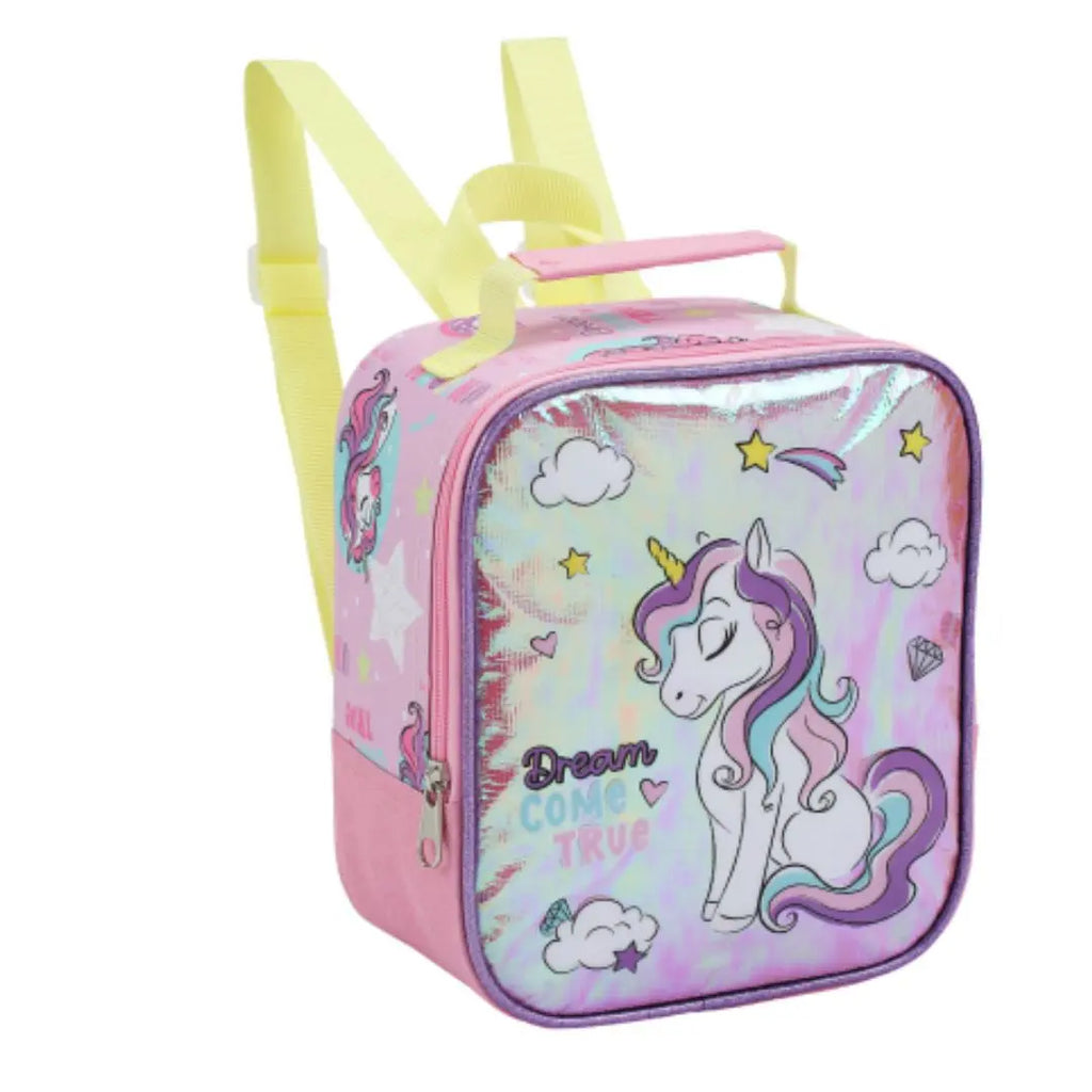 Kit Mochila de Carrinho Mala Bolsa Infantil Unicórnio Lancheira Térmica Feminino Meninas Seanite