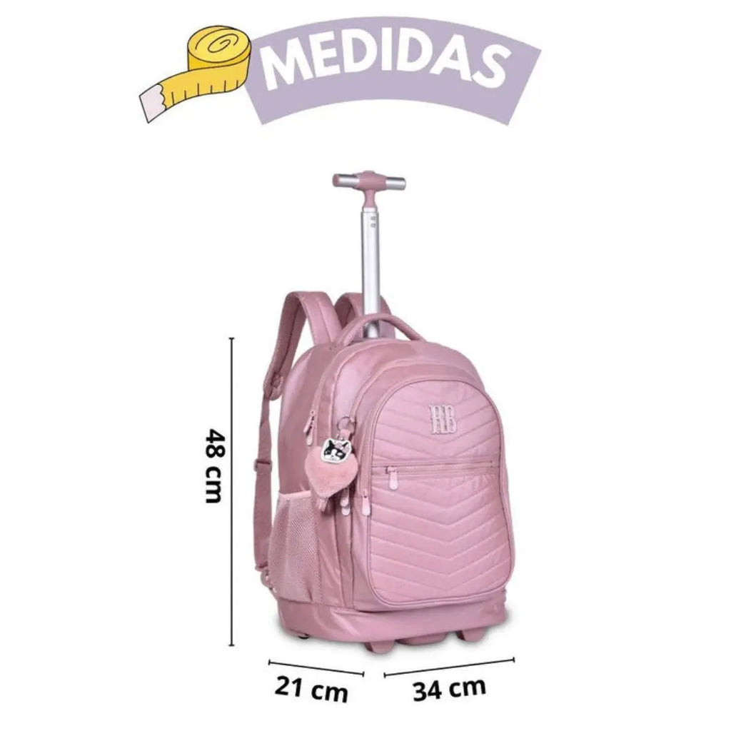 Mochila de Carrinho Mala Bolsa Bagagem Rosa Lilás Verde Rebecca Bonbon Escolar Juvenil Feminino Clio
